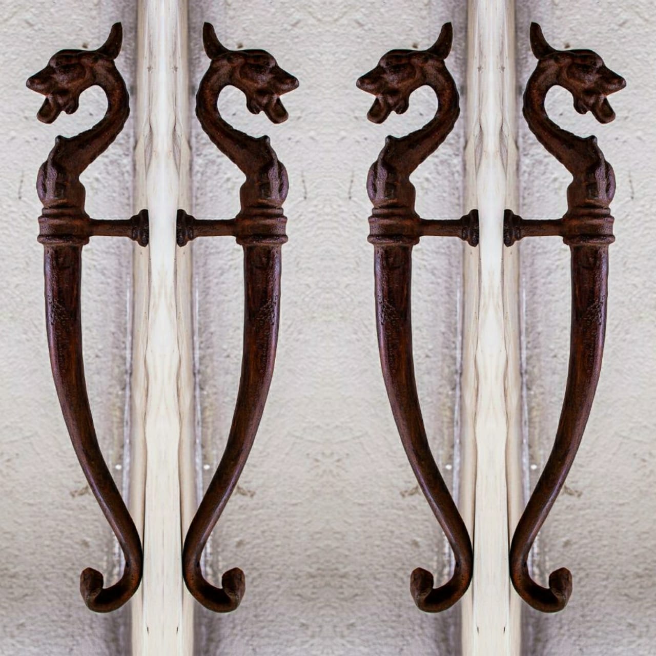 PUXADOR DE PORTA 04UN CAVALO MARINHO 50CM FERRO FUNDIDO PRONTO ARTES